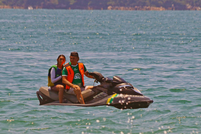 O presidente tem sido criticado por manter as férias no litoral de Santa Catarina enquanto cidades da Bahia sofrem as consequências das fortes chuvas. Hoje, Bolsonaro voltou a andar de motoaquática em uma praia catarinense.