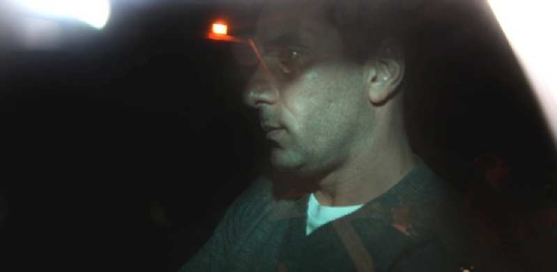 | Edmundo entra no carro logo depois de sair da delegacia para realizar exames |