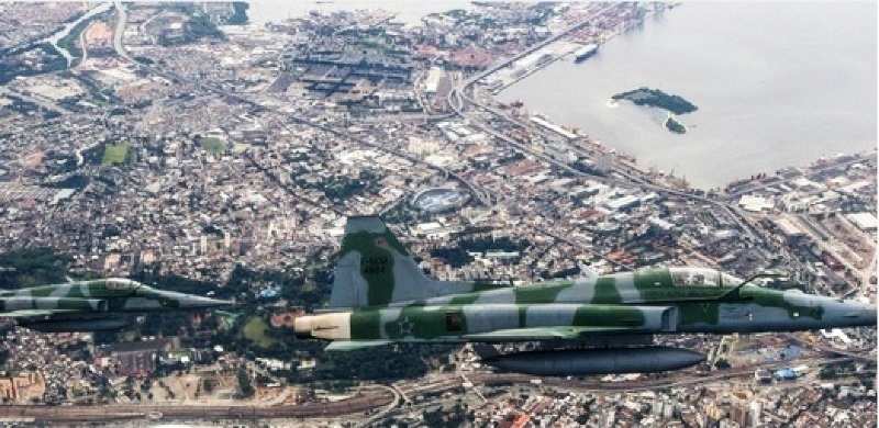 Os militares aproveitaram a oportunidade para demostrar à imprensa suas capacidades e operações de defesa, simulando a interceptação de um avião suspeito por uma par de caças F5M.