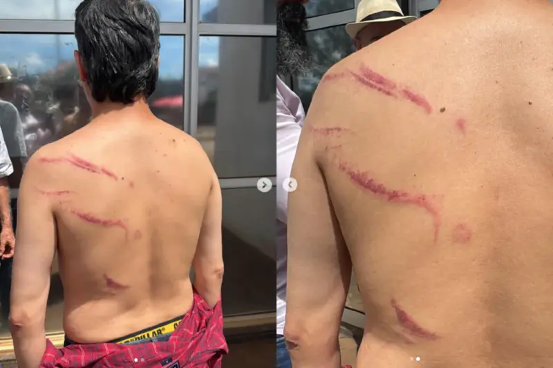 Nas redes sociais, o parlamentar publicou imagens das costas com marcas que, segundo ele, seriam resultado de agressões sofridas durante a abordagem policial.