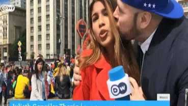 A repórter colombiana Julieth Gonzalez Theran, que trabalha para a agência de notícias Deutsche Welle, da Alemanha, também foi vítima, como destaca a imprensa internacional. Reprodução Assustada, a profissional continuou a reportagem no momento do assédio. No entanto, mais tarde, el...