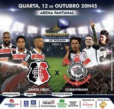 Os ingressos para a partida entre Santa Cruz x Corinthians, valido pela 30ª rodada do Campeonato Brasileiro da Série A, que irá acontecer na próxima quarta-feira (12), às 20h45 (MT), na Arena Pantanal, estão à venda em diversos pontos de Cuiabá. Com preços variando entre R$40 a R$ 200 os to...