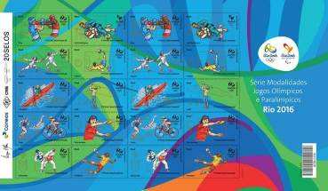 Marcando um ano para a abertura dos Jogos Olímpicos e Paralímpicos Rio 2016, os Correios lançam nesta quinta-feira (6), a segunda emissão especial “Série Modalidades Jogos Olímpicos e Paralímpicos Rio 2016”. A folha é composta por 20 selos que retratam nove esportes Olímpicos e um Paral...