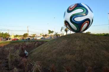 Após ato de vandalismo, 'Brazuca" é recolocada na rotatória