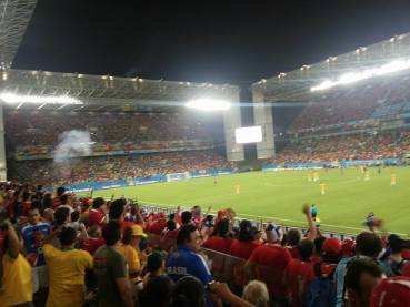 Em Cuiabá cerca de 30 mil pessoas assistiram e se empolgaram com o jogo no Fifa Fan Fest. O número até aumentou depois do jogo, pois vários compareceram só para assistir o show do grupo Fundo de Quintal. Porém, o que importou é que a Seleção Brasileira venceu no tempo normal e o grito de cl...