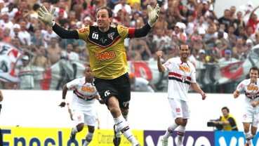 Wander Roberto/VipComm Rogério Ceni, que começou carreira no Sinop-MT, comemora depois de marcar 100º gol da carreira Domingo, 27 de março de 2011. Arena Barueri, 17h09min. Data, local e hor...