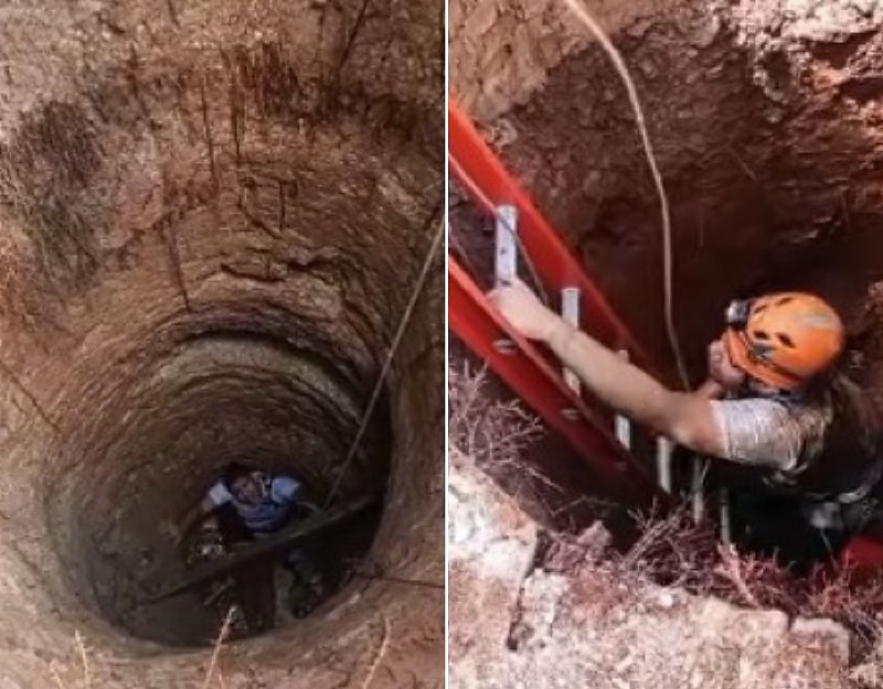 Para realizar a retirada, os militares colocaram uma escada e um dos integrantes da equipe desceu até o fundo da cisterna para auxiliar na retirada. O menor foi protegido com capacete e outros equipamentos de segurança.