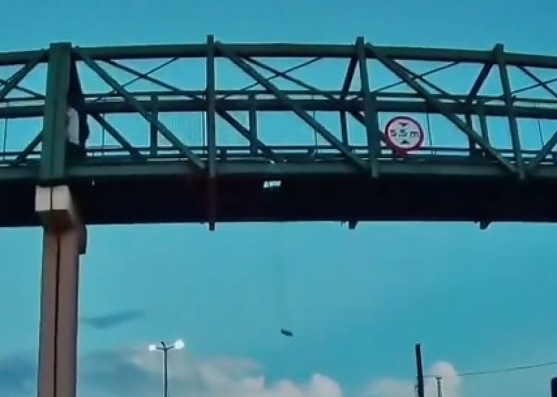 Um vídeo que circula nas redes sociais mostra parte do piso comprometida, com indícios de que o material cedeu ou está solto, inclusive com um fragmento pendurado. As imagens reforçam o estado de deterioração da passarela e os riscos tanto para pedestres quanto para motoristas que trafegam pela via.