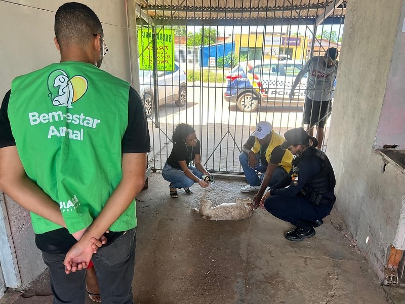 A Secretaria Adjunta de Bem-Estar Animal de Cuiabá atuou, na segunda-feira (13), em uma ocorrência de maus-tratos contra uma cadela no bairro Pedra 90. A ação contou com apoio da Polícia Militar, do Juizado Volante Ambiental (JUVAM) e de outros órgãos.