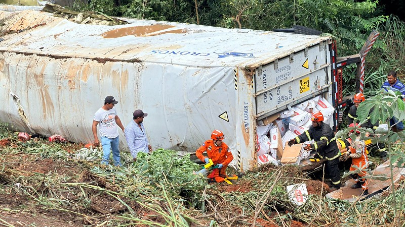 Duas pessoas ficaram feridas após o tombamento de um caminhão que carregava carne. A ocorrência foi registrada nesse sábado (28/02), na Serra do Mangaval, na BR-070, em Cáceres (220 km de Cuiabá).