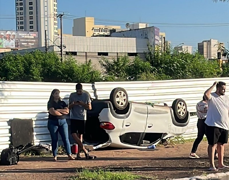 Um carro tombou na Prainha, em Cuiabá, na manhã desta sexta-feira (24). De acordo com a Secretaria de Mobilidade Urbana (Semob), uma mulher ficou ferida e foi encaminhada ao Hospital Municipal de Cuiabá (HMC). A ocorrência foi registrada próximo ao Supermercado Comper e gerou lentidão no trânsito.