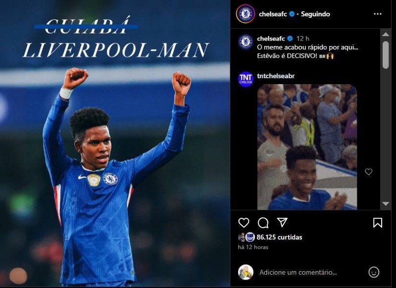 O Chelsea usou as redes sociais para provocar e “atualizar” um apelido que vinha sendo usado por torcedores brasileiros para criticar Estêvão. O jovem atacante, revelado pelo Palmeiras, era chamado de “Cuiabá Man”, em tom de ironia, por quem dizia que ele não decidia jogos grandes, apenas partidas de menor expressão.