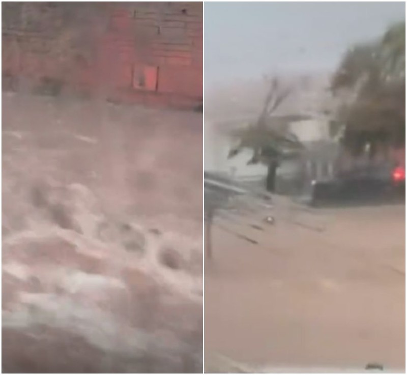 Vídeos gravados por moradores e motoristas, assista abaixo,mostram a força da correnteza invadindo a pista.
