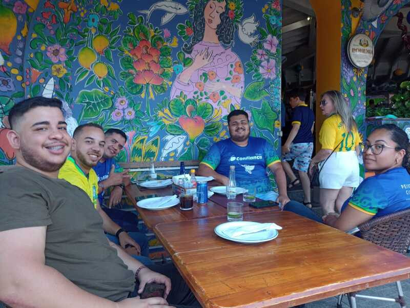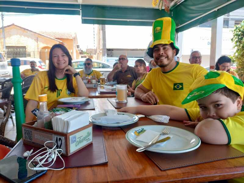 A fisioterapeuta Jessica Bastos resolveu levar a família para experimentar o “clima” do restaurante pela primeira vez. Até o momento, não se decepcionou. Mesmo sem Neymar em campo, a fisioterapeuta espera uma vitória do Brasil sobre a Suíça, segunda adversária da seleção brasileira nesta edição do campeonato mundial. Para ela, o placar deve ser de 2 x 0. “Richarlison vai dar conta”, garantiu.