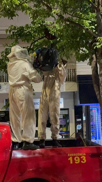 O Corpo de Bombeiros Militar de Mato Grosso (CBMMT) realizou, na tarde de quinta-feira (6), a remoção de um enxame de abelhas europeias localizado em uma árvore na calçada da Avenida Porto Alegre, região central de Primavera do Leste (a 243 km de Cuiabá).