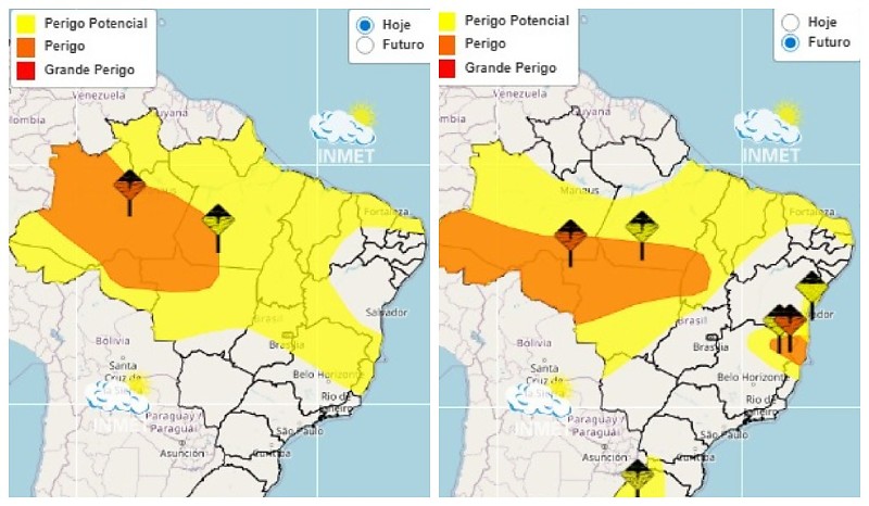 O alerta de “perigo potencial” abrange a baixada cuiabana e o aviso de “perigo” é válids para o Centro-Norte e Noroeste de Mato Grosso, portanto, atenção em Colniza, Juína, Sinop, Sorriso, Lucas do Rio Verde, Nova Mutum, Diamantino e região. Os riscos de estragos maiores por conta das tempestades são grandes.