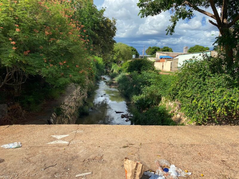 Um pouco mais distante, um trecho do extenso córrego do Barbado, na região do bairro Dom Aquino, também sofre com acúmulo de lixo descartado irregularmente. No interior e nas margens, havia muitas sacolas e recipientes plásticos, latas e mato no entorno. Próximo do córrego, na rua Comendador Henrique, tem um ponto de ônibus utilizado por vários moradores, que ficam em meio ao lixo descartado no local.