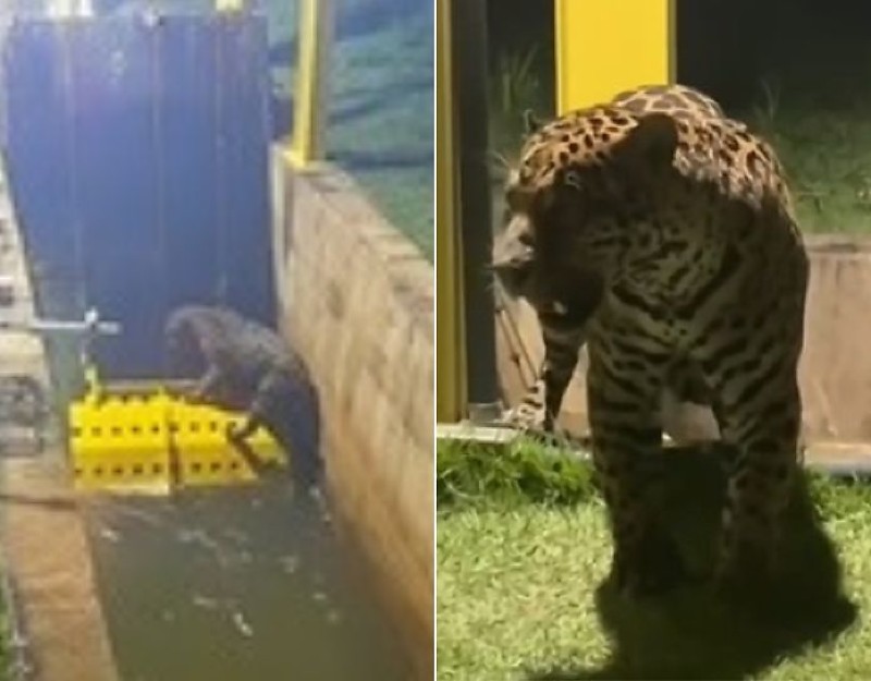 A onça ganhou confiança para subir na plataforma somente a noite. Desconfiado, o felino ficou imóvel enquanto a estrutura era erguida até a parte mais alta do canal. Quando chegou à superfície, saltou para a grama e seguiu em direção a mata.