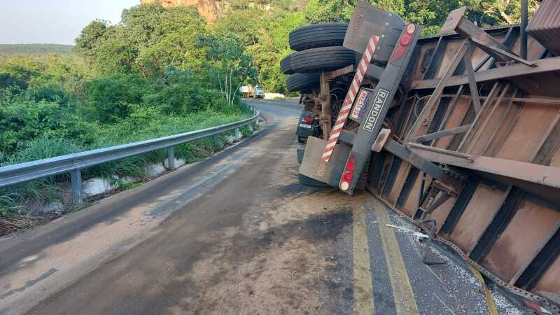 O acidente de trânsito com carreta graneleiro aconteceu por volta das 17h30, na MT-251, próximo ao KM 47. O veículo transportava fertilizantes seguia em direção ao município de Rondonópolis, quando perdeu o freio, chocou com o guard rail e não o motorista perdeu a direção, ocorrendo o tombamento da carreta.
