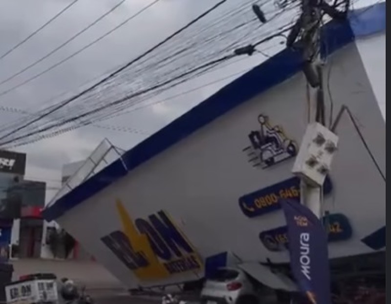 A fachada de uma loja de baterias desmoronou na tarde de sábado (15) em Várzea Grande e atingiu um veículo que estava estacionado em frente ao estabelecimento, localizado na Avenida Ulisses Pompeu de Campos. (VEJA O VÍDEO AO FINAL)
