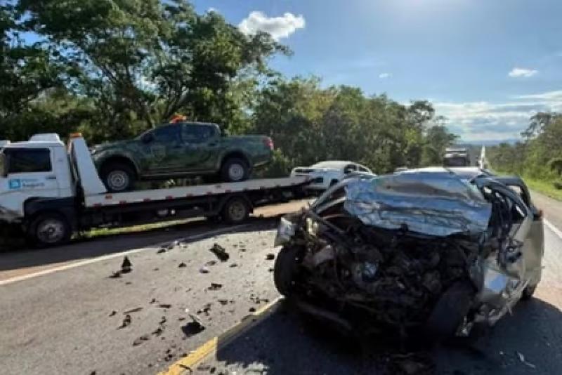 Segundo a Polícia Rodoviária Federal (PRF), o carro da família seguia sentido Cáceres quando entrou na pista contrária e bateu de frente com o outro veículo. Toda a frente do carro ficou destruída devido ao impacto da batida.