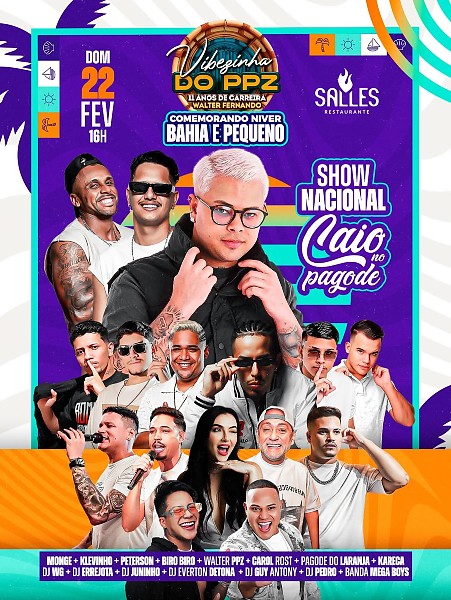 - Vibezinha do PPZ – 11 anos de carreira de Walter Fernando, com comemoração de aniversário de Bahia e Pequeno e show nacional de Caio no Pagode. Também se apresentam Monge, Klevinho, Peterson, Biro Biro, Walter PPZ, Carol Rost, Pagode do Laranja e Kareca. DJs WG, Errejota, Juninho, Everton Detona, Gui Antony e Pedro animam a festa, além da Banda Mega Boys.