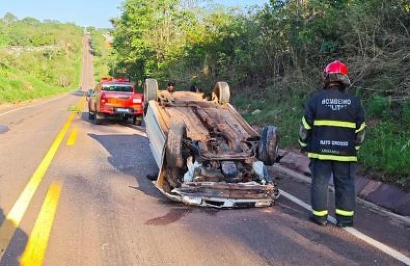 Gol capota e motorista fica ferido em rodovia no interior de MT