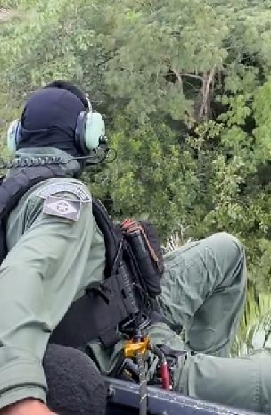Um cão farejador reforçou a operação, mas a forca-tarefa foi pausada a noite. Os militares retomaram as buscas na manhã deste sábado. O perímetro de exploração e os métodos foram revistos, além de receber o apoio do Ciopaer.
