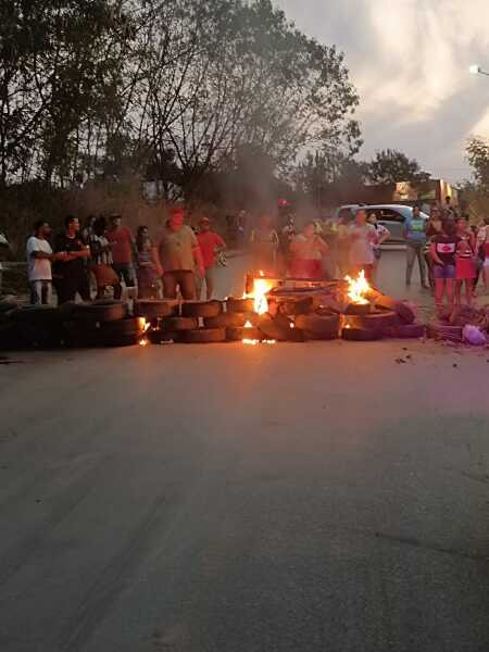 Moradores do bairro Jardim União, em Cuiabá, protestaram contra a falta d'água queimando pneus na Estrada do Inpe, próximo à caixa d'água do Jardim Florianópolis, na noite desta segunda-feira (14). Por volta de 40 manifestantes estavam presentes no ato.