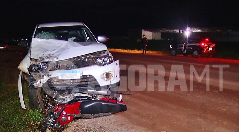 Um motociclista foi arremessado sobre o para-brisa de uma caminhonete modelo L200 Triton em um grave acidente registrado no Anel Viário Conrado Sales Brito, em Rondonópolis (212 km de Cuiabá). No acidente, registrado por volta das 23 h desta quinta-feira (12), a moto acabou sendo 'engolida' pela caminhonete.