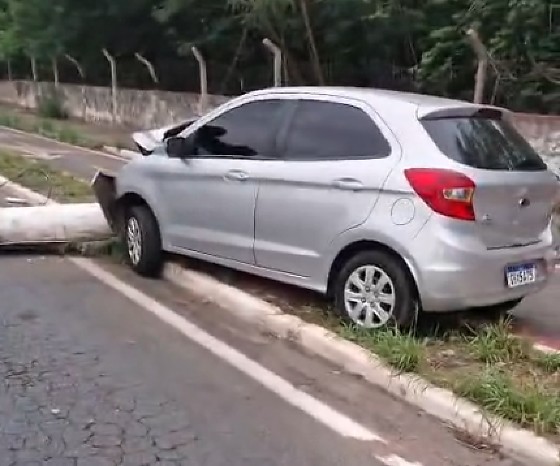 Por volta das 4h, um veículo Ford Ka, conduzido por uma mulher de 32 anos, perdeu o controle da direção e colidiu contra um poste de iluminação pública.