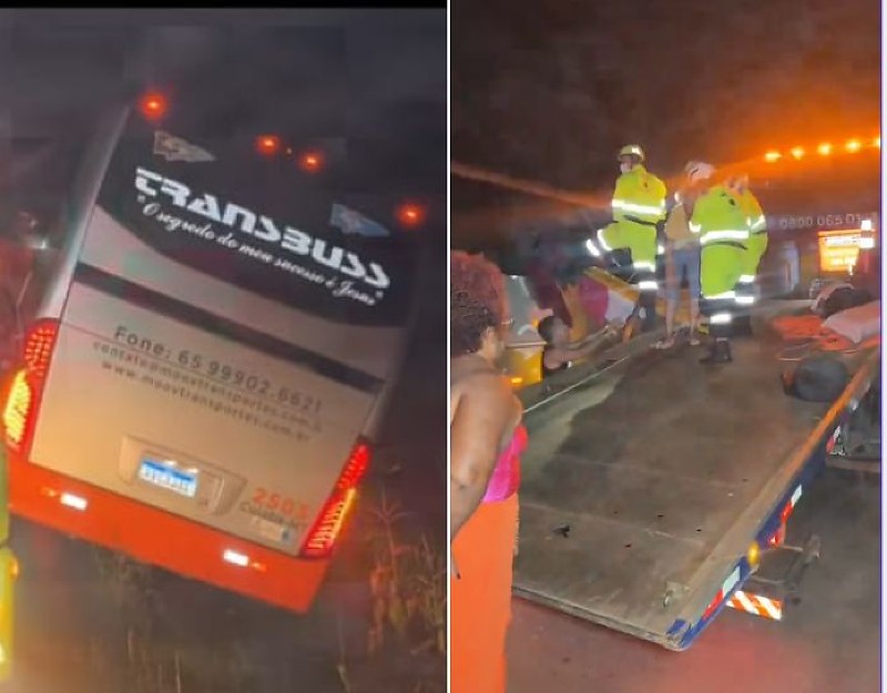 Um ônibus da Secretaria Municipal de Saúde de Sinop (502 km de Cuiabá) caiu em vala e tombou na madrugada desta quinta-feira (5) na BR-163. O veículo retornava de atendimentos a pacientes do município e estava próximo a entrada da cidade quando o motorista perdeu o controle da direção e saiu da pista. O ônibus parou em abertura em área de vegetação e os passageiros foram retirados pela janela.