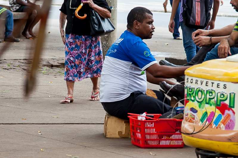 Na região do calçadão, encontramos Jeferson de Castro Cesar, 32 anos, mais conhecido como Ceará. Há dez anos em Cuiabá, ele é vendedor de camisas da região central de Cuiabá.