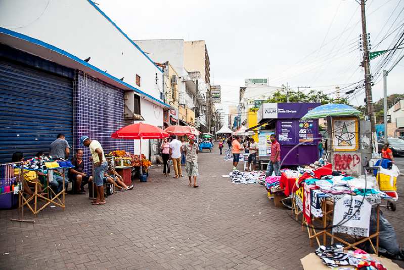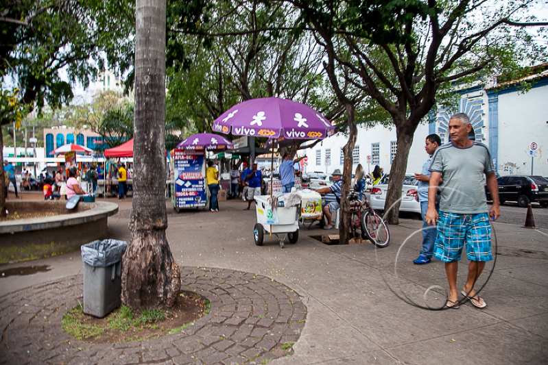 Na Praça Ipiranga, centro de Cuiabá, várias pessoas fizeram do local um verdadeiro ponto de venda ambulante. Local de passagem de pessoas que buscam o Ganha Tempo, lojas de eletrodomésticos, ponto de ônibus e até um lanche, a praça chega a registrar o fluxo de mais de 10 mil pessoas por dia.