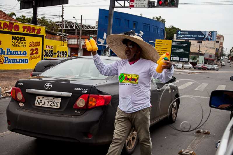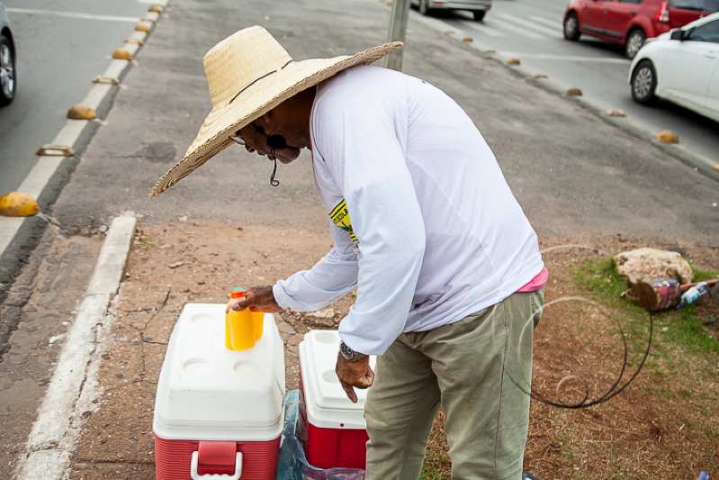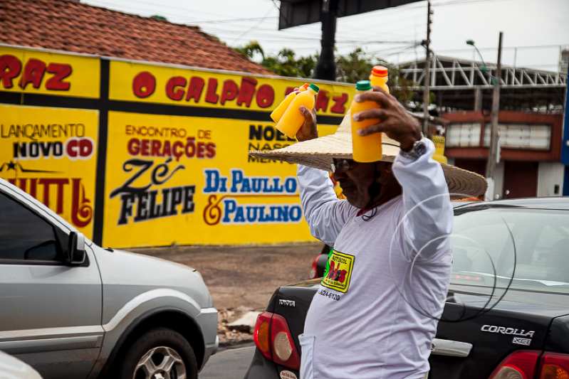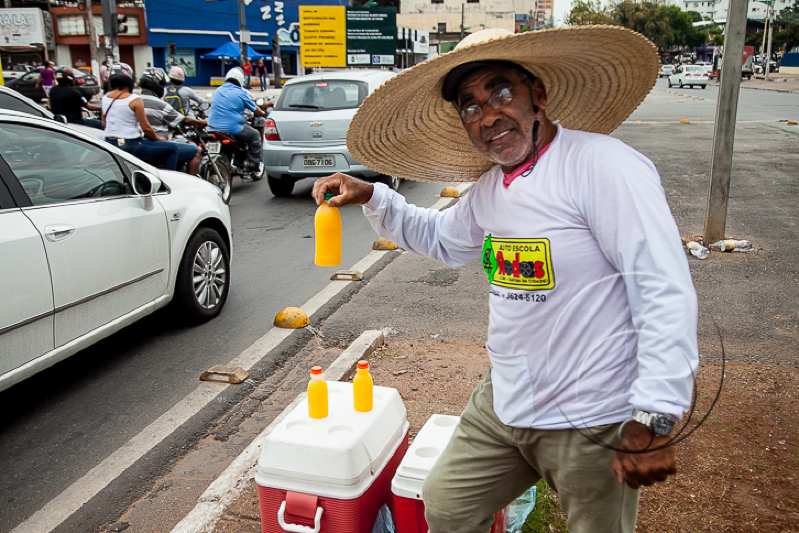 Ailton Ferreira Lopes, 55 anos, policial militar aposentado, é uma das figuras mais carismáticas do trânsito de Cuiabá. Vendedor de sucos de laranja há oito anos, o homem traja um chapéu de palha para se livrar do forte sol e mantém seu ponto no entroncamento da Avenida Dom Aquino com a XV de Novembro.