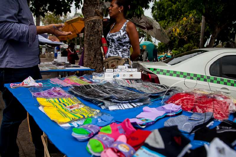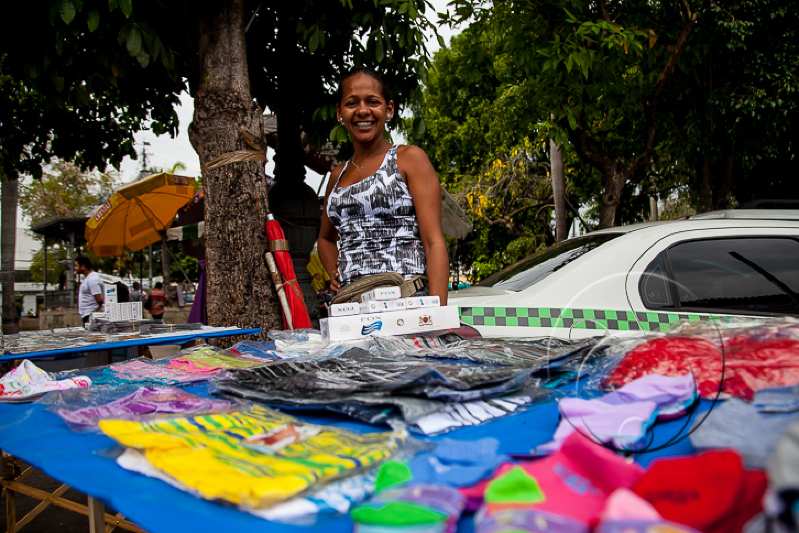Por lá a reportagem encontrou a vendedora de peças íntimas Anielle Kelke dos Santos, 28 anos. Há um ano e meio, ela trabalha no local com banca fixa e ainda faz venda de cuecas e calcinhas em casa.