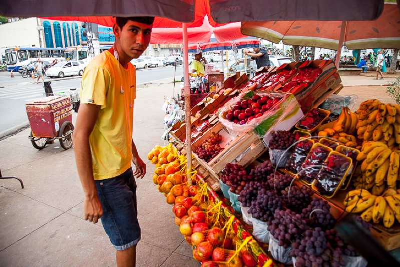 Na mesma praça, encontramos Gabriel Tavares. Com 18 anos, ele afirmou que ajuda o pai desde que era criança. Na Praça Ipiranga, ele trabalha como vendedor de frutas há dois anos.