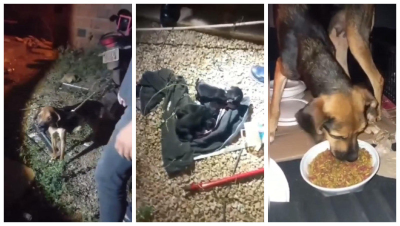 Os militares foram até o local e viram uma cadela amarrada em uma corda e os seus sete filhotes soltos, mas sem ração e água. Em conversa com o dono da casa, o homem relatou que a cadela estava amarrada porque, ao abrir o portão, o animal fugia e acabava incomodando os vizinhos. Sobre os filhotes, o homem alegou que eles já haviam se alimentado no dia.