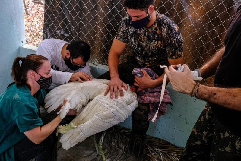 A Secretaria de Estado de Meio Ambiente (Sema-MT) intensificou neste sábado (18) a estrutura para atendimento à fauna silvestre durante os incêndios que acometem o Pantanal mato-grossense. Foram contratados médicos veterinários especializados em animais silvestres para atuar junto com os servidores da Coordenadoria de Fauna e Recursos Pesqueiros da Sema-MT nesses atendimentos.