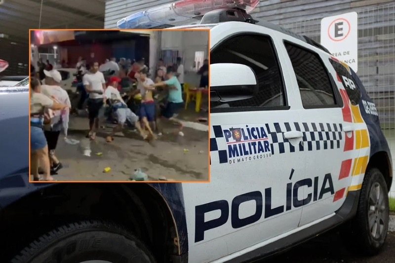 Durante a briga generalizada, os homens arremessaram latas de cerveja e quebraram garrafas de vidro. Ao chegar ao local, os policiais militares precisaram pedir apoio, pois jogaram pedras nas viaturas. Ao descer da viatura, um policial levou um golpe nas costas do rapaz de 18 anos, que usou um pedaço de madeira.