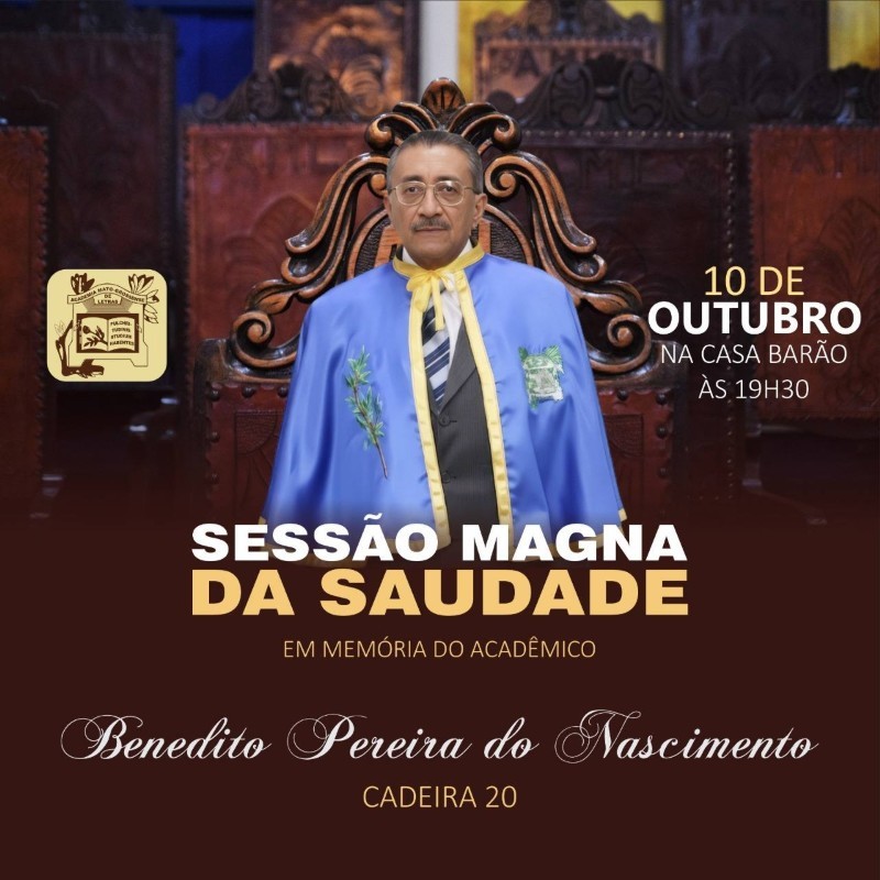 Academia Mato-grossense de Letras realiza, nesta sexta-feira (10), a Sessão Magna da Saudade, em memória do desembargador Benedito Pereira do Nascimento, que tinha assento na AML e faleceu no dia 30 de julho passado, aos 86 anos.