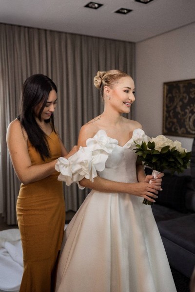 A noiva Nara Rubya Maria da Silva, de Goianésia (GO), relembra a emoção de encontrar a estilista: “Eu tive a experiência de realizar o meu sonho com a Thaylla. Recebi a indicação dela por uma amiga, quando ainda buscava o vestido ideal. Conversei com várias lojas renomadas, mas não sentia segurança. Quando a Thaylla me respondeu, mesmo fora do horário, senti que era ela quem faria o meu vestido. Ela é autêntica, cuidadosa e se dedica a entender o que a noiva realmente sonha.”