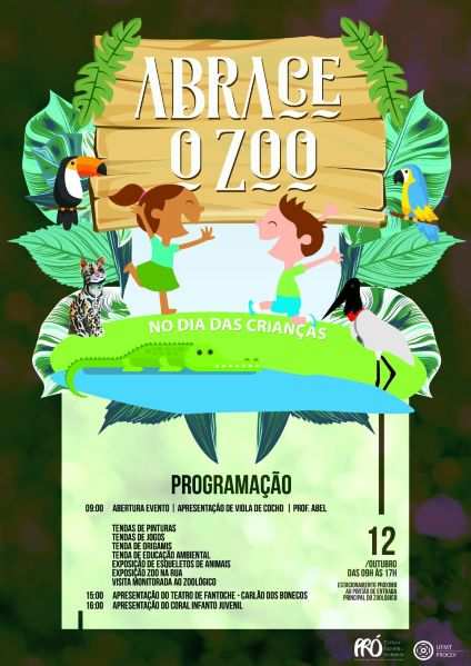 Abrace Zoo: Realizado na Universidade Federal de Mato Grosso (UFMT) neste dia 12 uma série de atividades estão sendo desenvolvidas com a apresentação de musical com viola de cocho, tendas de pintura, tendas de jogos, tenda de educação ambiental, exposição de esqueletos de animais, exposição zoo na rua, visita monitorada ao zoológico, apresentação de fantoches e apresentação do coral infantil. A programação começa as 9 horas e será encerrada as 16 horas.