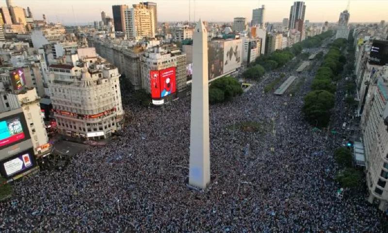 A seleção argentina previa se deslocar do Centro de Treinamento da Associação do Futebol Argentino (AFA), na região de Ezeiza, próxima ao aeroporto, rumo à região central de Buenos Aires, um trajeto de cerca de 70 km, na terça-feira. A concentração de pessoas foi tão grande que o ônibus que levava Messi e companhia precisou mudar de rota, cancelando a passagem pela Praça da República e, posteriormente, pela Casa Rosada. Os jogadores precisaram ser levados de helicóptero de volta para o CT da Argentina.