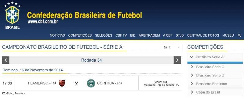 "A empresa organizadora do jogo, Feito Eventos, comunica que a partida entre Flamengo e Coritiba que seria realizada na Arena Pantanal no dia 16.10, válida pela 34ª rodada do Campeonato Brasileiro da Série A, foi cancelada devido a não autorização da Confederação Brasileira de Futebol (CBF) para realização do confronto em Mato Grosso.