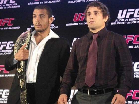 José Aldo defende o cinturão peso-pena contra o americano Chad Mendes na luta principal do UFC 142, no próximo dia 14, no Rio de Janeiro. A TV Globo transmite ao vivo. O evento contará ainda com o duelo entre Vitor Belfort e o também americano Anthony Johnson, pelos pesos-médios.