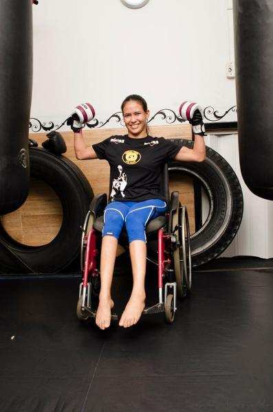 As dificuldades não imobilizam Larissa, que pratica muay thai, joga basquete e luta para divulgar os benefícios dos esportes aos PNE