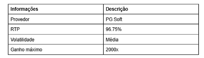 Um dos melhores jogos da PG Soft com tema leve e extremamente divertido. Possui uma mecânica de jogo inovadora e simples, ideal para todos jogadores.