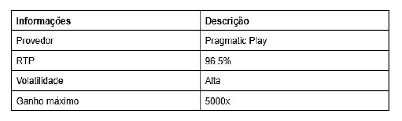 A aposta mínima é de R$ 0.20 e a aposta máxima de R$ 400 em cada giro. Possui símbolos especiais e outros recursos extras para otimizar a jogatina.