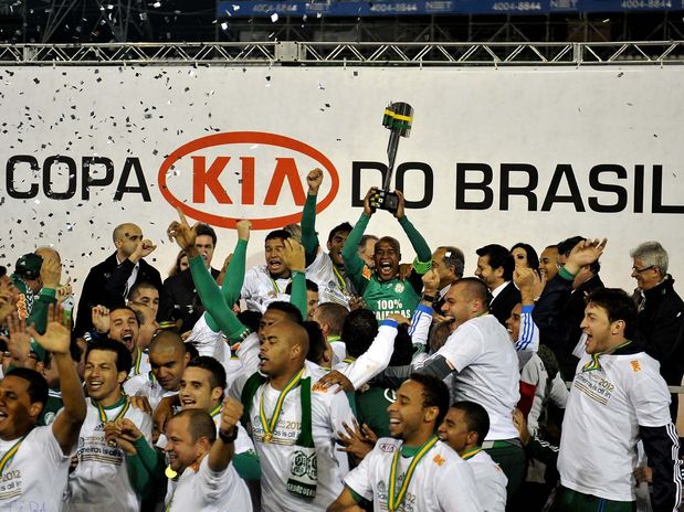 Enquanto negocia há cerca de três meses uma parceria para o futebol com um fundo de investimento carioca, a diretoria do Palmeiras deixou o bolso dos jogadores recheados após o título da Copa do Brasil. A premiação para os atletas pela conquista do torneio ultrapassou os R$ 100 mil para cada um, segundo amigos de jogadores. G1 Capitão do Palmeiras, Marcos Assunção, ergue a taça de campeão da Copa do Brasil 2012